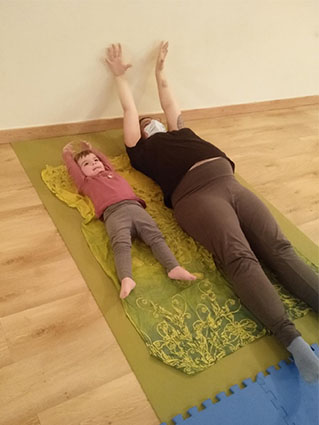 El Yoga con l@s pequeñ@s Yoguit@s, se realiza a través de canciones y cuentos, creando lazos a través del juego. Movimiento libre y uso de materiales Pikler y Montessori.
